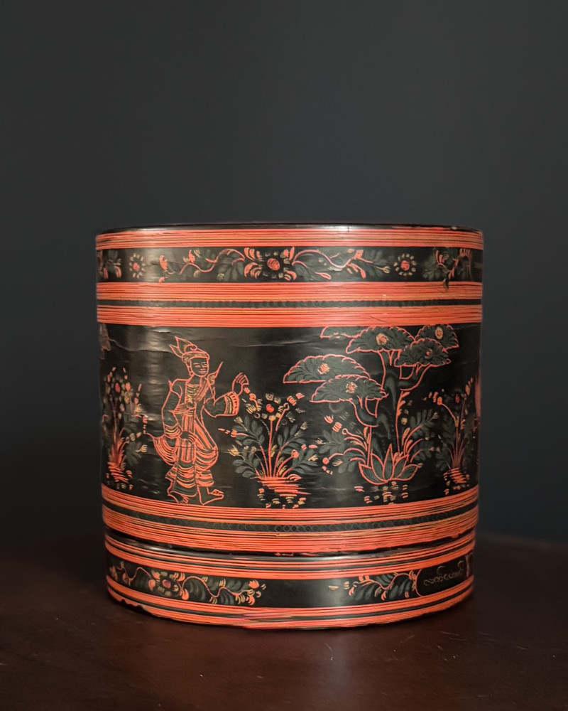 Elegant Burmese lacquer betel box, a refined handcrafted piece from Myanmar. A collector's item, decorative piece, and above all, a unique gift.