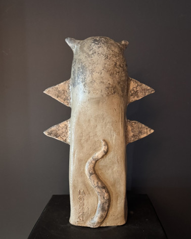Discover Pierre Sgamma's series of seven ceramic totems, created for the exhibition “Japan 1968”: playful and joyful shamanism. The “Totem in the Deep Garden” is entirely covered in flowers.