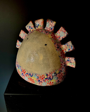 Discover Pierre Sgamma's series of seven ceramic totems, created for the exhibition “Japan 1968”: playful and joyful shamanism. The “Totem with the Flower Crown” bears a festive garden on its crown and on its coat.