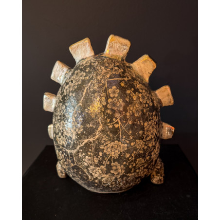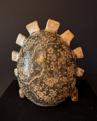 Discover Pierre Sgamma's series of seven ceramic totems, created for the exhibition “Japan 1968”: playful and joyful shamanism. The “Totem of Many Seasons” carries around it traces of an ancient sun.