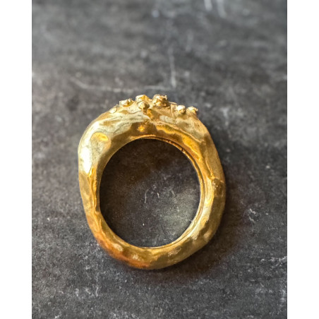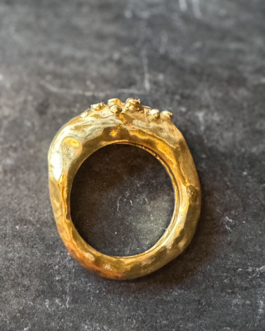 This ring is one to remember. Its thick, wide, bumpy sterling silver band, topped with small corollas begs to be paired as a bouquet with other models such as the Angelina or very large flat rings, with or without gemstones.. It can be matched with several fine rings like these or, on the other hand, it will not lose its beauty next to a more imposing ring like the Rowanda. Create your own style, the composition that suits you, the one of your story...