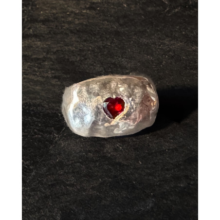 A magnificent heart-shaped garnet, 0.43ct on a solid silver setting, available in size 54, other sizes available upon order.