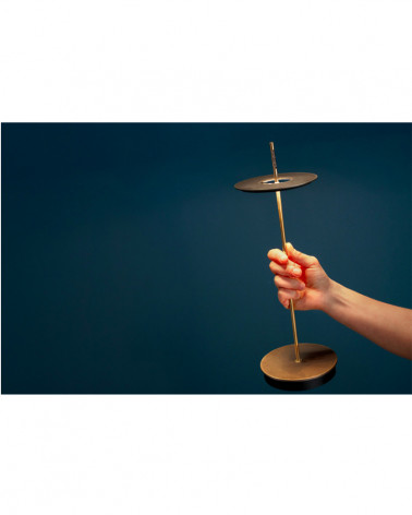 Un anneau parfait en apesanteur sur une tige droite supportés par un disque lesté pour cette lampe à l’esthétique parfaite qui fonctionne sans fil, avec recharge de la batterie dissimulée dans le support. Elle illuminera vos tables avec l’intensité que vous aurez choisie grâce à son variateur 3 positions, qui se commande par des petits tapotements sur l’anneau. vous l’allumerez et l’éteindrez de la même façon !