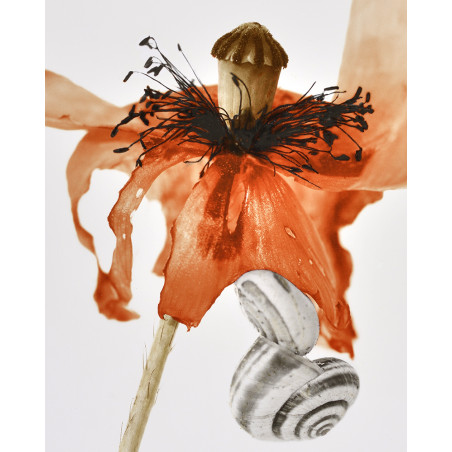 Coquelicot et escargot- tirage argentique signé par l'artiste, numéro 2/6.