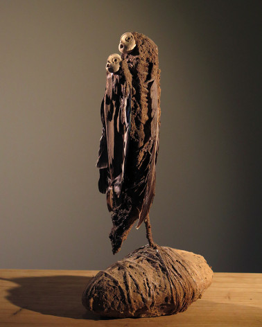 Porteurs de mémoire fait partie d'une série de petite statues, réalisées avec des débris ramassés en bords de mer et en forêts, réalisées par l'artiste Jephan de Villiers et exposées à la galerie Retour De Voyage à l'occasion de l'exposition J'aime les arbres.