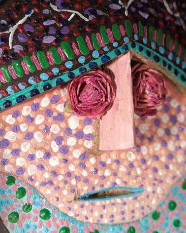 Pour cette exposition, Michel Loeb a réalisé 23 masques, tous aussi colorés et joyeux, pleins de petits points, signature de Michel Loeb, ainsi que plusieurs tableaux.