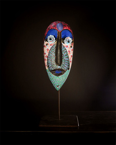 Pour cette exposition, Michel Loeb a réalisé 23 masques, tous aussi colorés et joyeux, pleins de petits points, signature de Michel Loeb, ainsi que plusieurs tableaux.