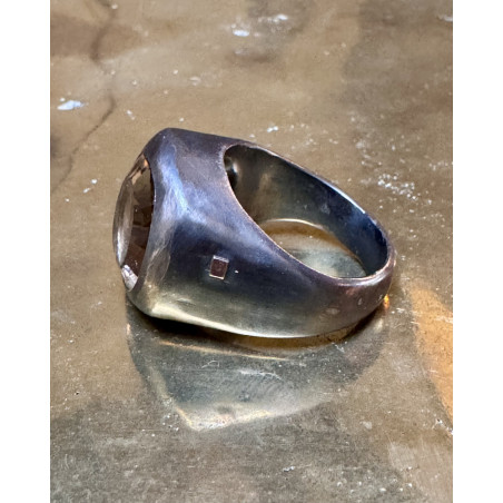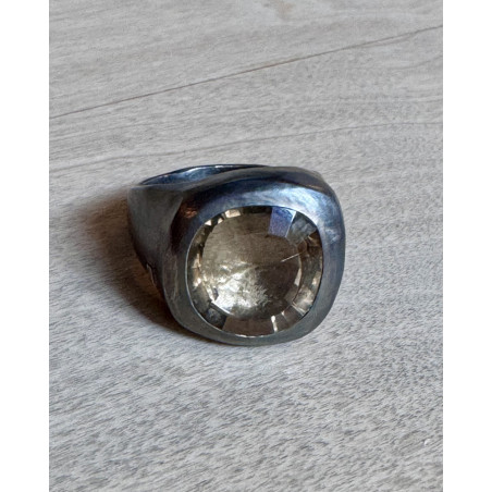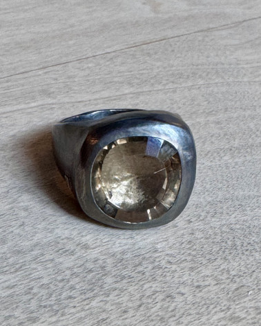 Une bague audacieuse et sculpturale, en argent oxydé avec un beau et magnifiquement sculpté quartz fumé.