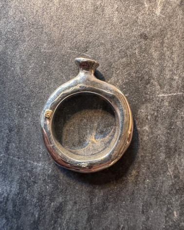 Sous le nom de Rosa Maria, un prénom hérité de sa mère argentine, Rosy Abourous crée et produit depuis des années une ligne de bijoux qui fait aujourd’hui le tour du monde. Lorsque l'on voit ces bagues, la première chose que l'on a envie de faire, c'est le les tenir au creux de la main, soupeser leur densité, caresser avec le pouce la douceur et l'irrégularité de leur surface. On pense tout de suite que c'est un geste que l'on fera souvent avec cette bague, en train de rêver... Ensuite, on les passe à son doigt... d'abord une bague toute seule, l'impression est un peu étrange, la bague est tellement différente de celles que l'on porte habituellement... on tourne la main dans tous les sens, la bague prend la lumière, les creux et les bosses du métal s'illuminent, on tombe amoureuse de la bague ... La galerie Retour De Voyage présente les bagues de Rosa Maria depuis toujours, et depuis peu les colliers et les boucles d'oreilles.